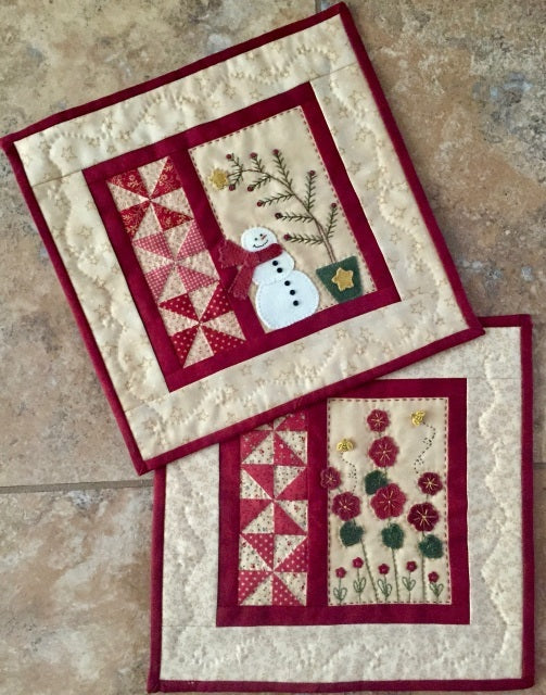 Seasons One includes two little quilts (10 1/2" square) that depict summer and winter. Both have wool appliqué and are embellished with tiny buttons. The printed pattern includes the buttons for both.