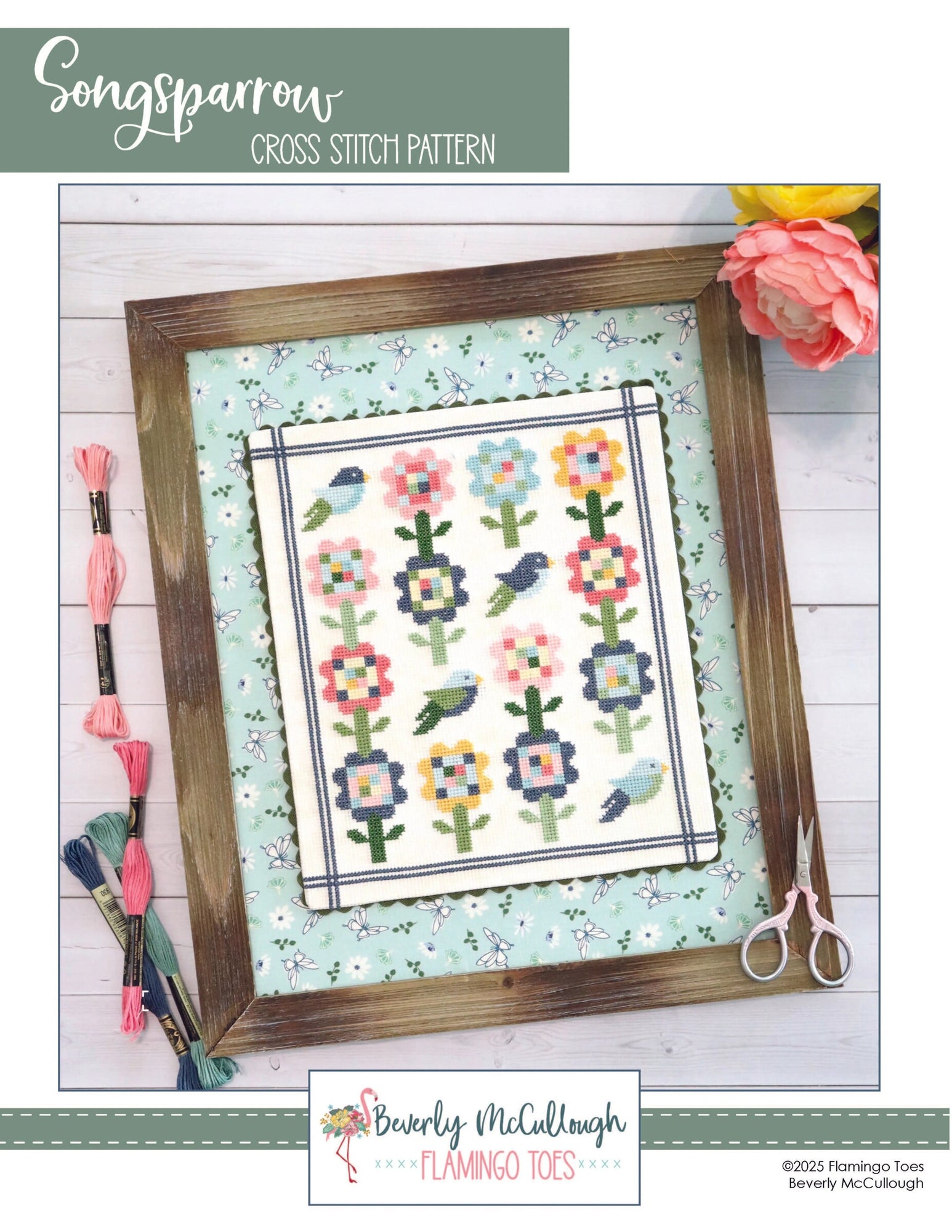 This cross stitch design has a matching quilt pattern and coordinating Songsparrow needle minder!